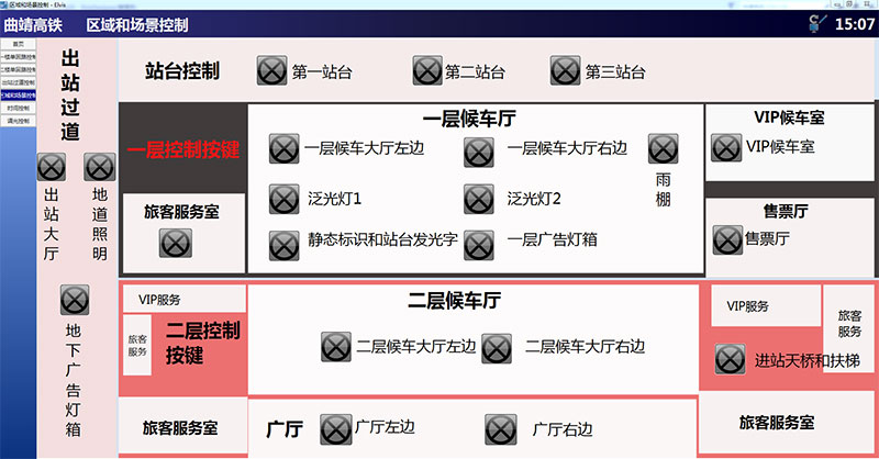 二樓單控界面見圖,主要是控制二樓候車大廳和廣廳的單回路控制。