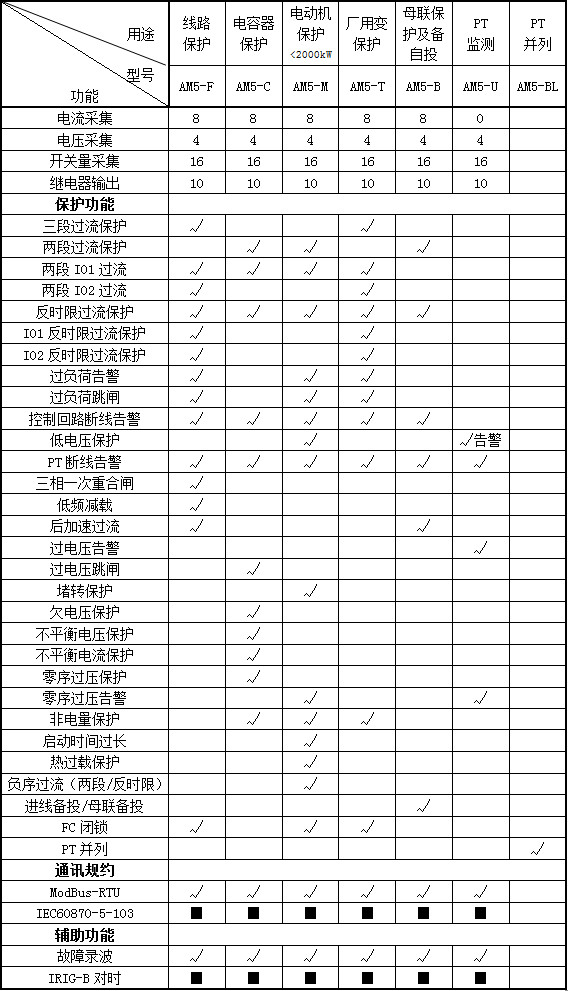 注:√表示具備此功能,■表示可選功能, 空白表示無此功能。